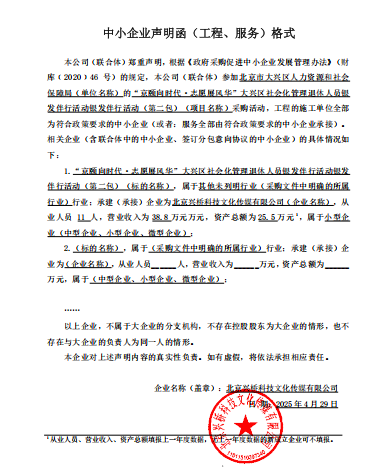 “京颐向时代·志愿展风华”大兴区社会化管理退休人员银发伴行活动 (第二包):
