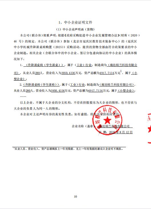 二、项目名称:延庆区中小学机械升降课桌椅购置(2025)