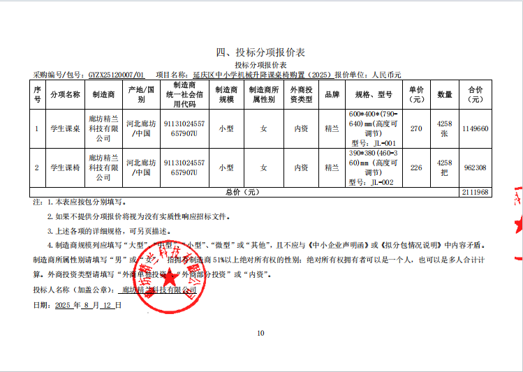 | 廊坊精兰科技有限公司 | 详见分项报价表 | 详见分项报价表 | 1 | 211.1968万元 | 211.1968万元 | 详见招标文件 |