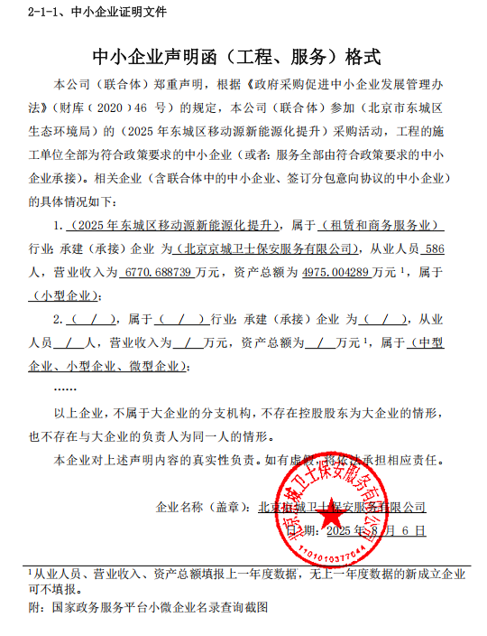 中标成交供应商名称:北京京城卫士保安服务有限公司