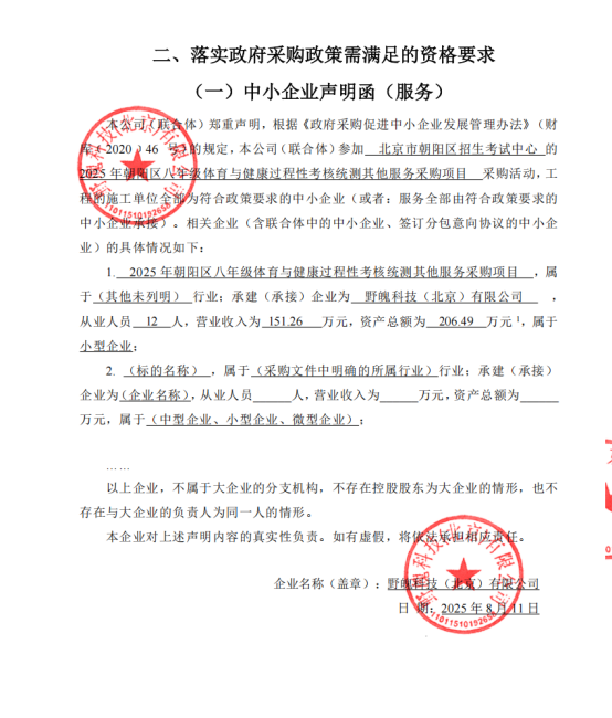 二、项目名称:2025年朝阳区八年级体育与健康过程性考核统测其他服务采购项目