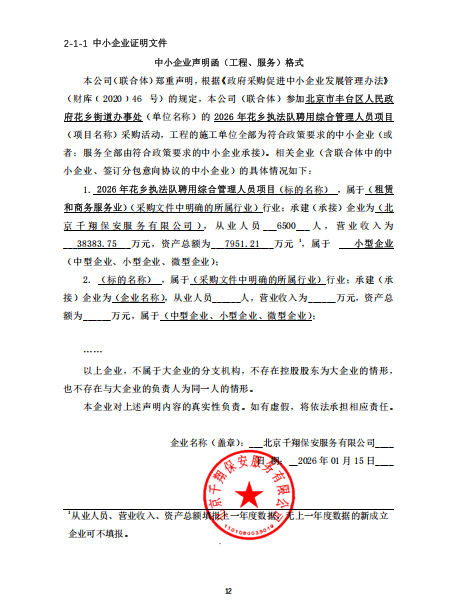 标的名称:2026年花乡执法队聘用综合管理人员项目
