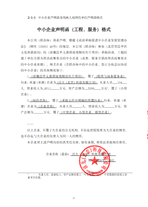 名称:读懂昌平文旅深度视频宣传片项目 服务范围:需采用实拍、声音、3D建模、科技特效、动画等多种媒体宣传手法,拍摄制作一支高质量的读懂昌平文旅深度视频宣传片。 服务要求:满足采购需求 服务时间:2026年春节前完成制作并发布 |