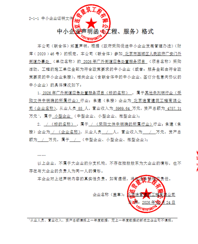 | 北京连营建筑工程有限公司 | 1 | 136万元 | 136万元 | 详见竞争性磋商文件 |