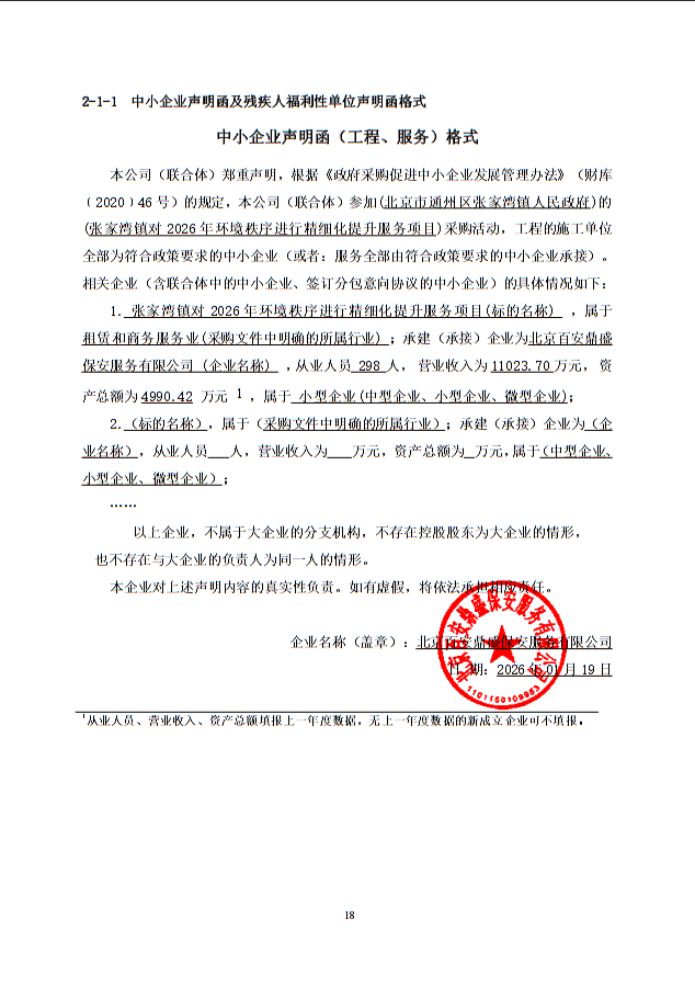 二、项目名称:张家湾镇对2026年环境秩序进行精细化提升服务项目
