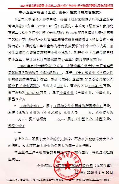 二、项目名称:2026年日常运维经费-北京第二实验小学广外分校-运行管理经费餐饮服务采购项目