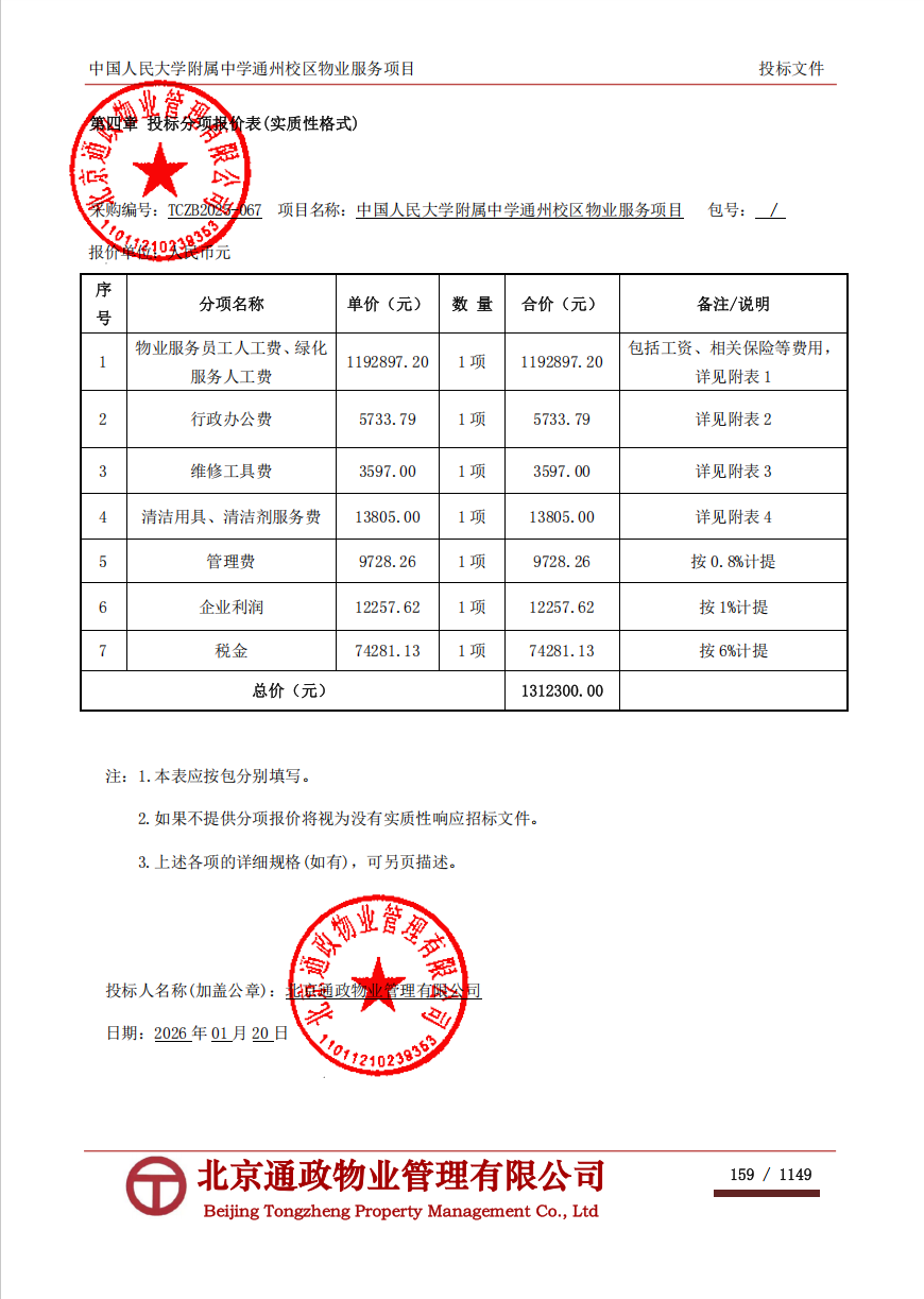 | 北京通政物业管理有限公司 | 1 | 131.23万元 | 131.23万元 | 详见招标文件要求 |