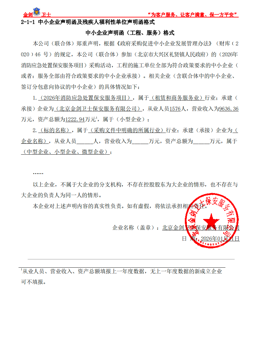 中标成交供应商名称:北京金剑卫士保安服务有限公司