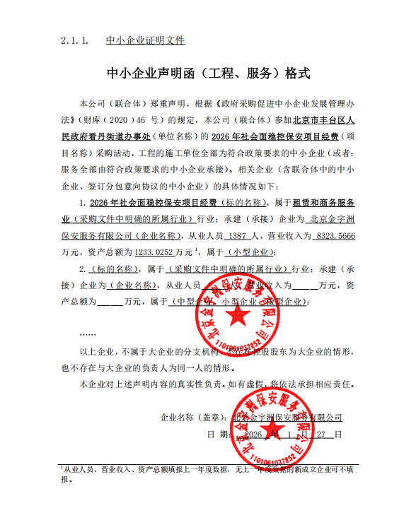 | 北京金宇洲保安服务有限公司 | 1 | 151.701万元 | 151.701万元 | / |