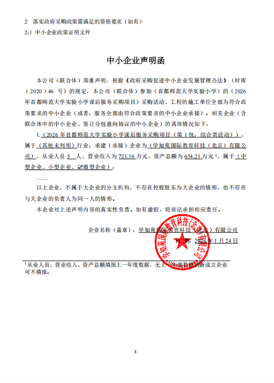 项目用途、简要技术要求:2026年首都师范大学实验小学课后服务采购