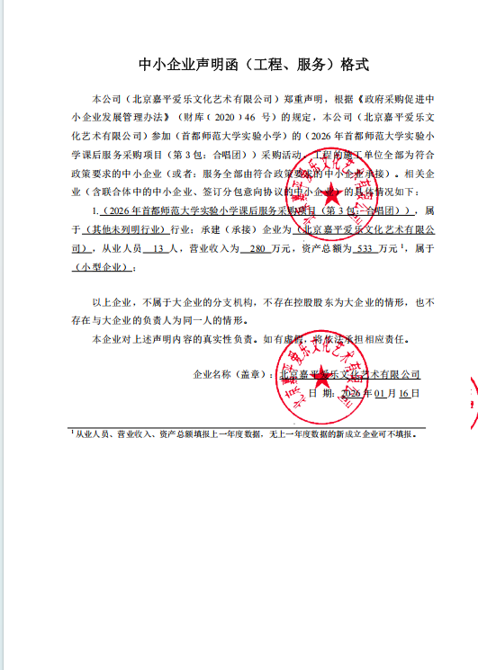 2026年首都师范大学实验小学课后服务采购项目(第3包:合唱团):中标单位:北京嘉平爱乐文化艺术有限公司,代理服务费:4440元