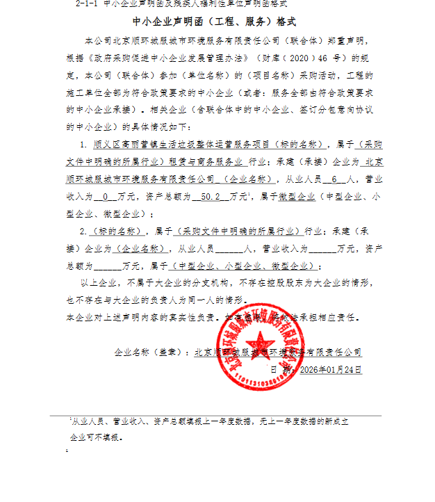 二、项目名称:顺义区高丽营镇生活垃圾整体运营服务垃圾处理服务采购项目