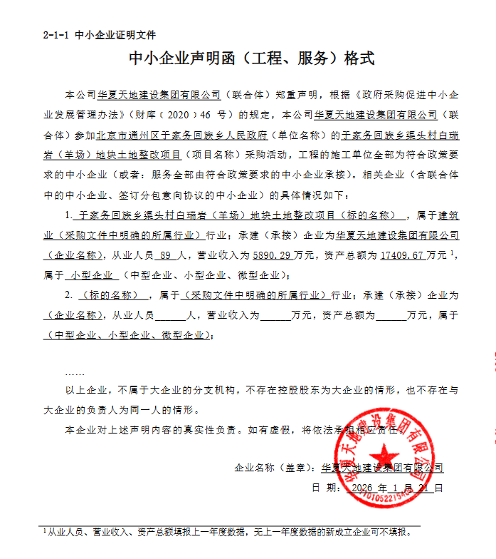 | 华夏天地建设集团有限公司 | 1 | 242.076876万元 | 242.076876万元 | 详见采购需求 |