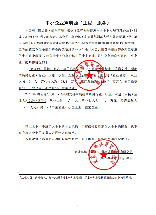 项目用途、简要技术要求:首都师范大学附属定慧里小学2026年课后服务项目(第3包:柔道、射击)包含柔道、射击技能训练等课程;合同履行日期:自签订合同之日起至2026年12月31日