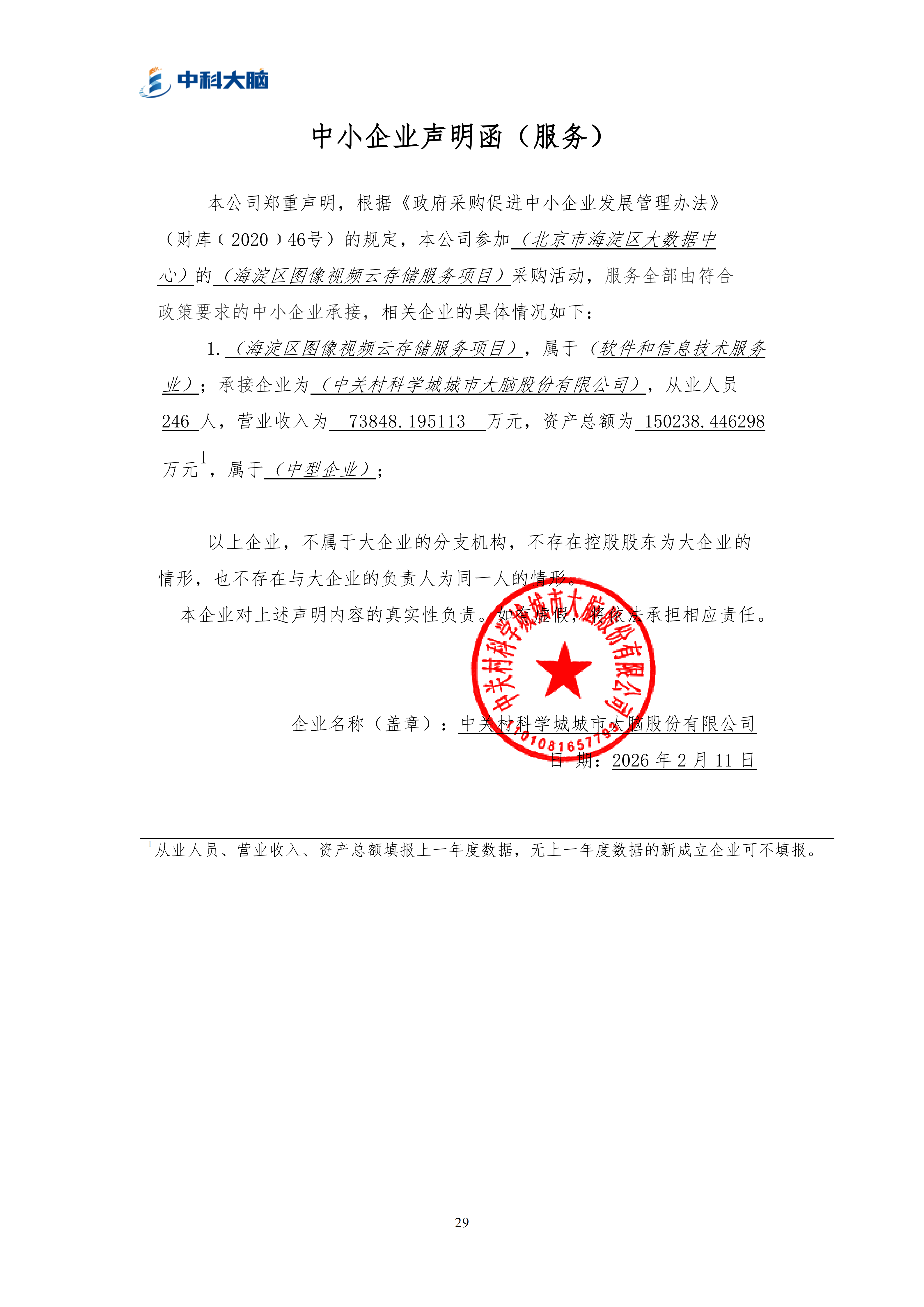 | 中关村科学城城市大脑股份有限公司 | 1 | 1343.563万元 | 1343.563万元 | 详见招标文件采购需求部分 |