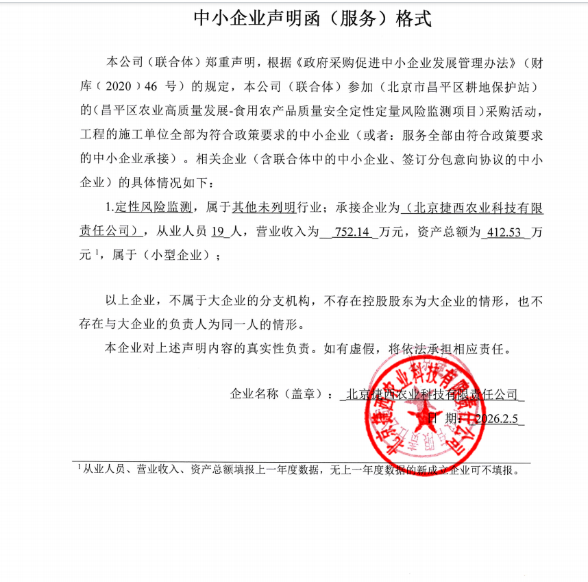 二、项目名称:昌平区农业高质量发展-食用农产品质量安全定性定量风险监测项目