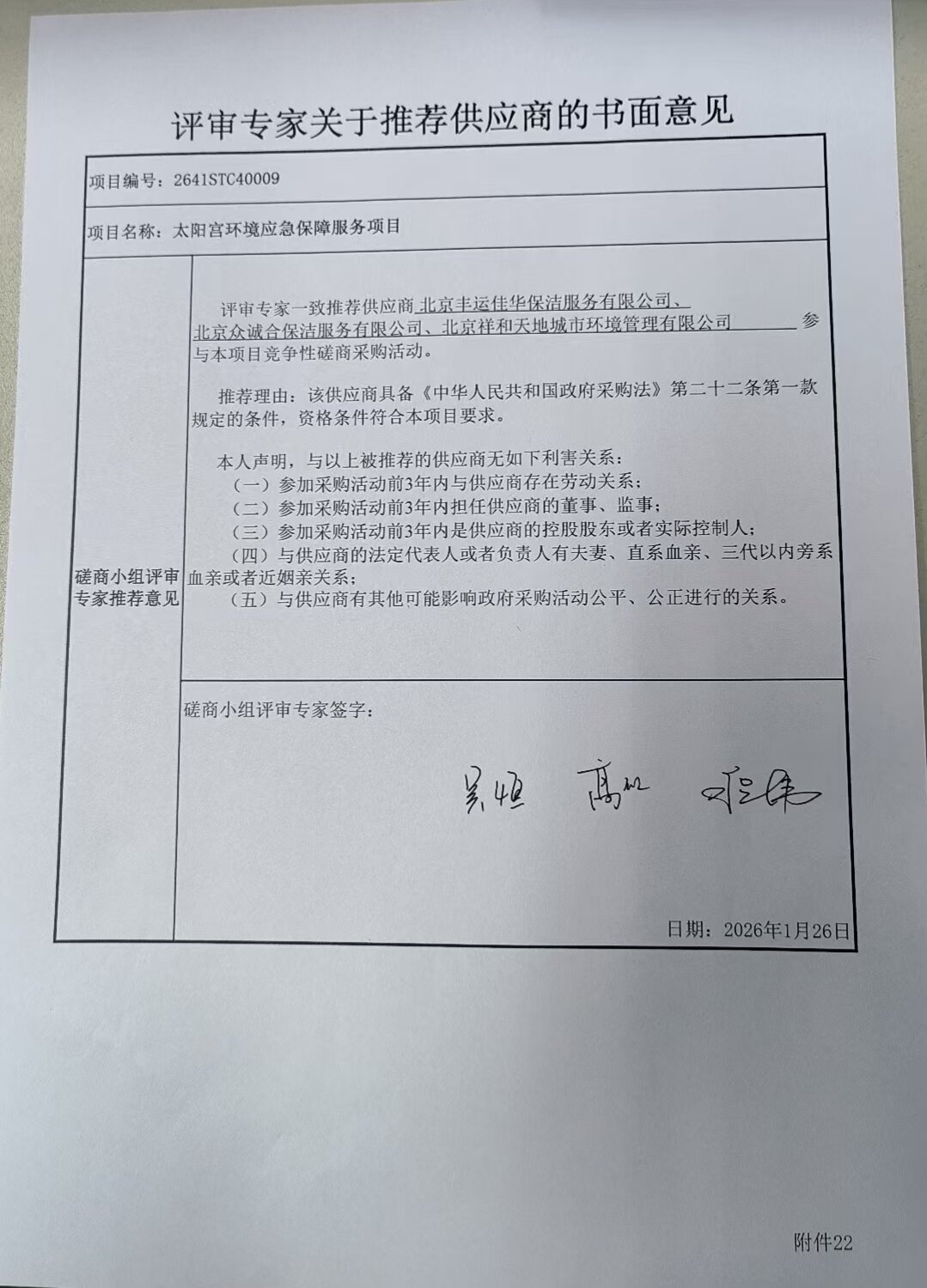 中标成交供应商名称:北京丰运佳华保洁服务有限公司
