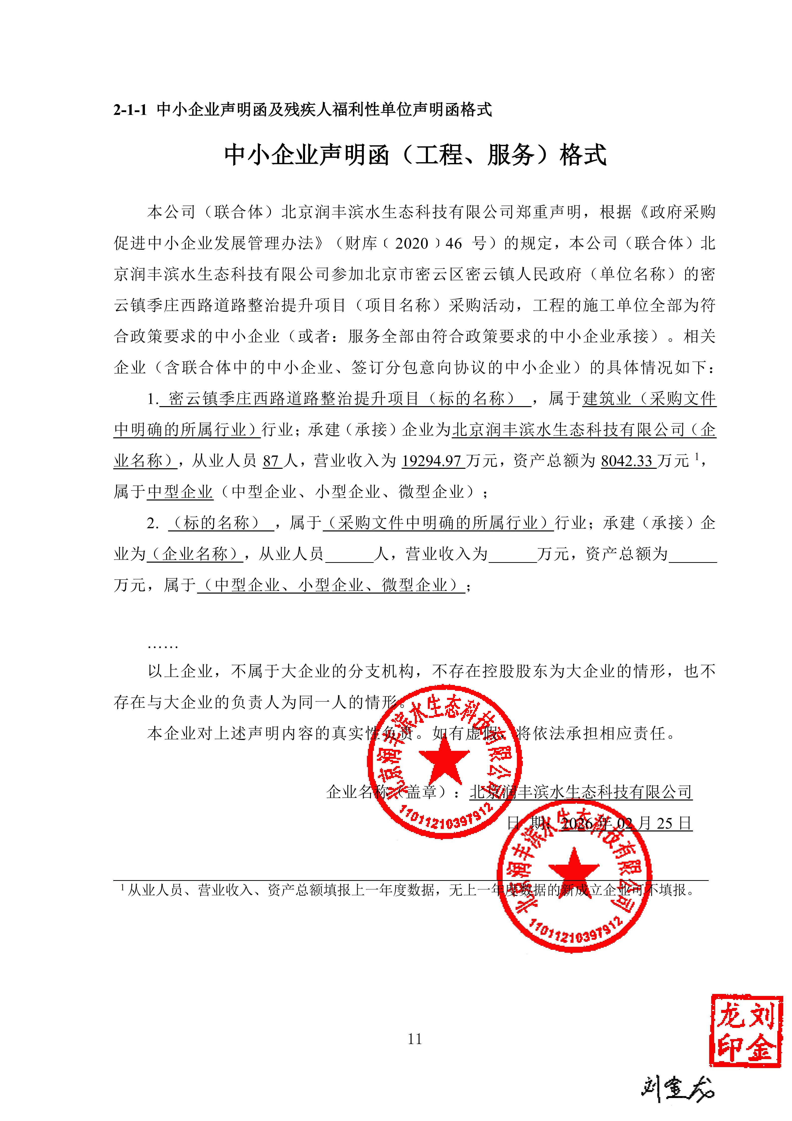 | 北京润丰滨水生态科技有限公司 | 1 | 238.284698万元 | 238.284698万元 | 质量标准:合格 安全生产达标等级:达标 |