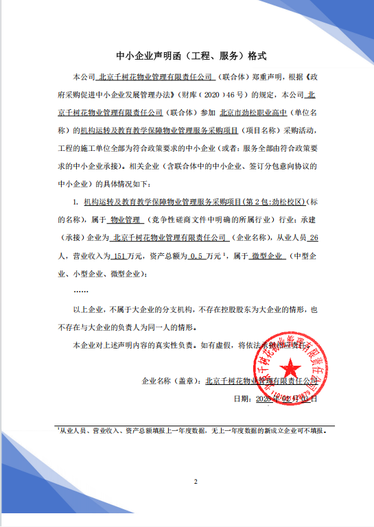 中标成交供应商名称:北京千树花物业管理有限责任公司
