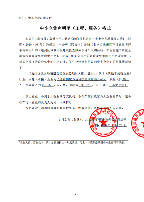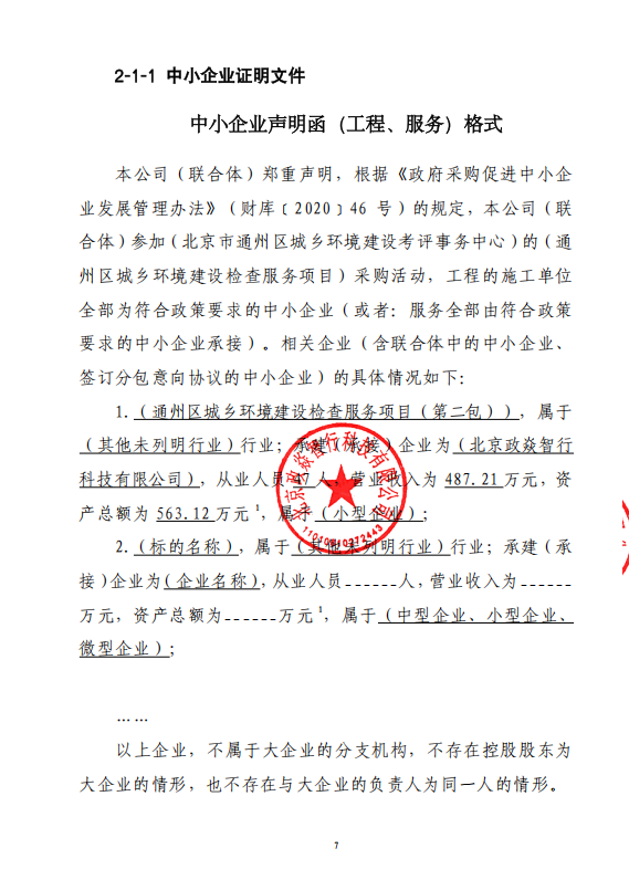二、项目名称:通州区城乡环境建设检查服务项目