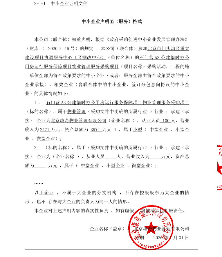 二、项目名称:石门营A3公建临时办公用房运行服务保障项目物业管理服务采购项目