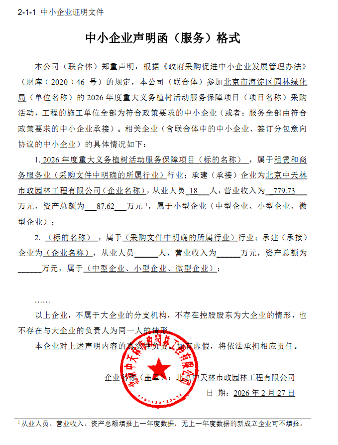 简要技术要求:2026年度重大义务植树活动服务保障项目,项目涵盖环境整治、建筑翻新、交通改善、基础设施优化及配套服务保障等具体要求详见磋商文件。