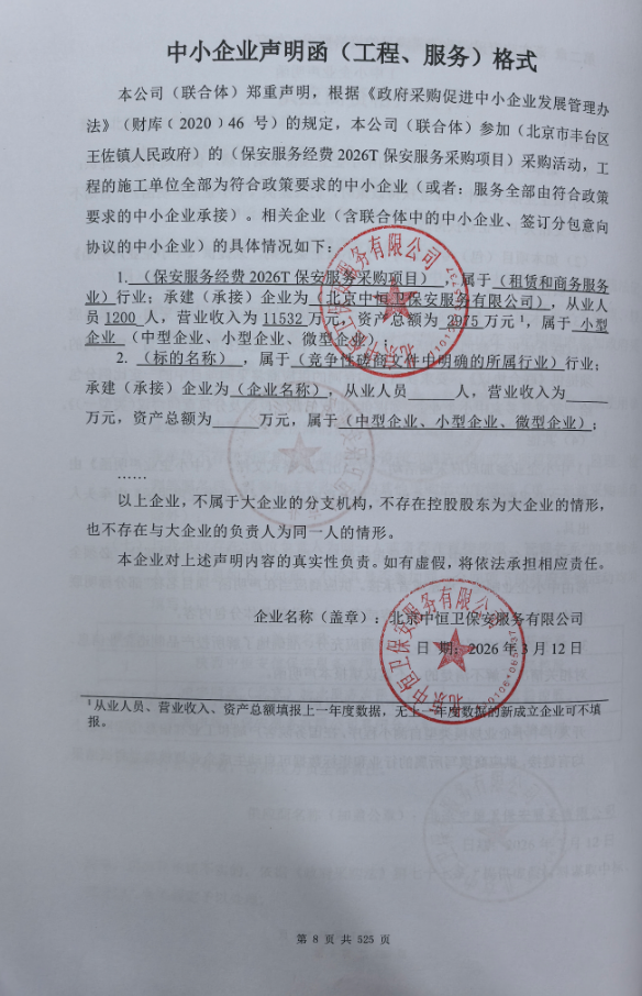 | 北京中恒卫保安服务有限公司 | 1 | 209.088万元 | 209.088万元 | 按照竞争性磋商文件要求 |