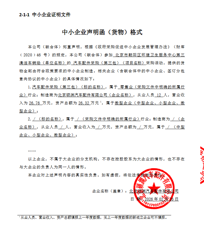 中标成交供应商名称:北京硕渊汽车配件有限公司