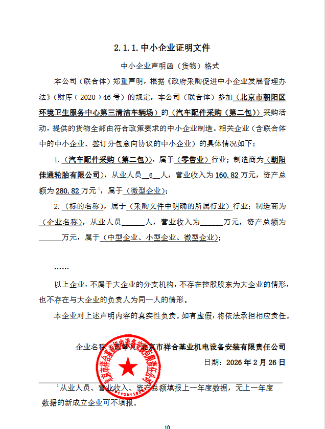 | 北京市祥合基业机电设备安装有限责任公司 | 汽车配件采购(第二包) | / | 1 | 30万元 | 30万元 | 自采购合同签订之日起至2026年6月30日 |
