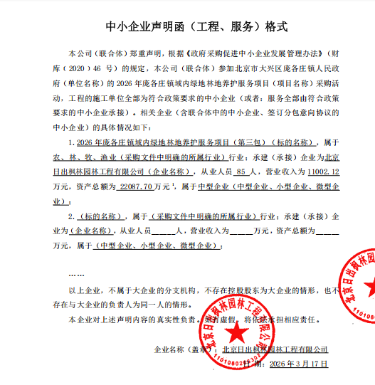中标成交供应商名称:北京日出枫林园林工程有限公司