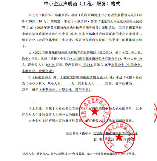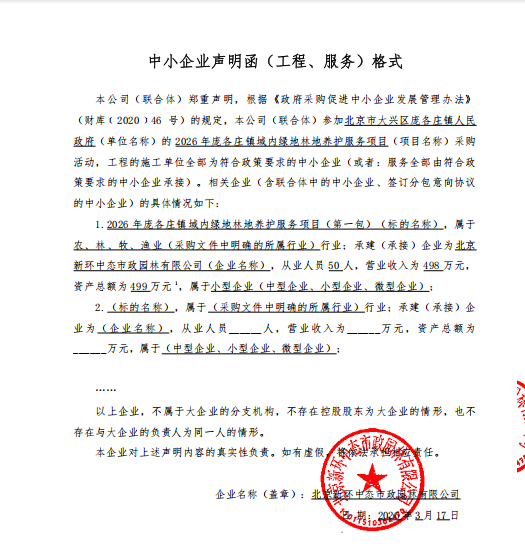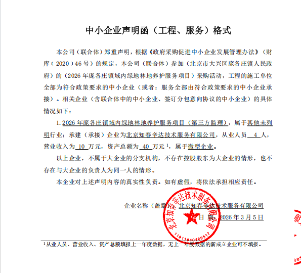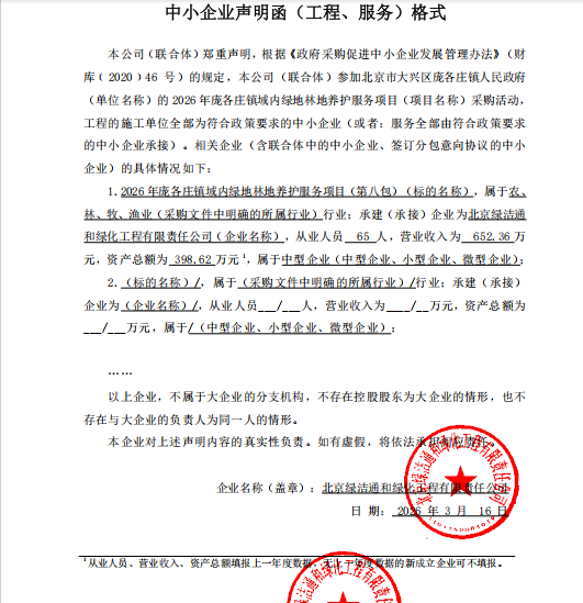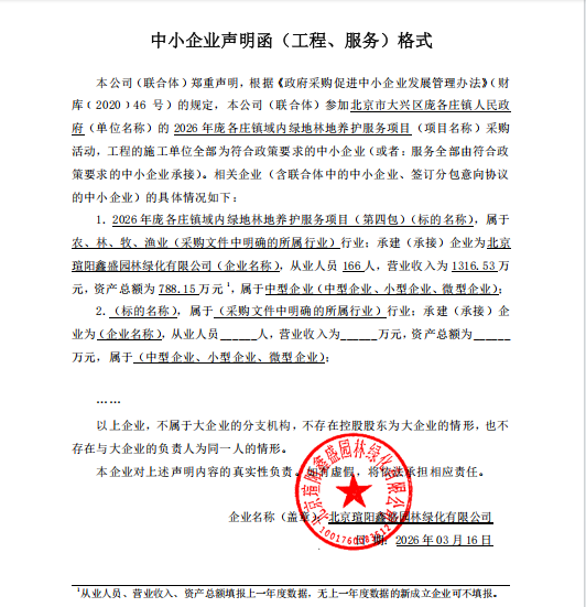 项目用途、简要技术要求:2026年庞各庄镇域内绿地林地养护服务项目,具体详见招标文件