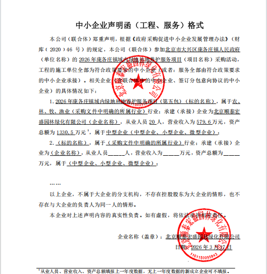 中标成交供应商名称:北京顺泰宏盛园林绿化有限公司