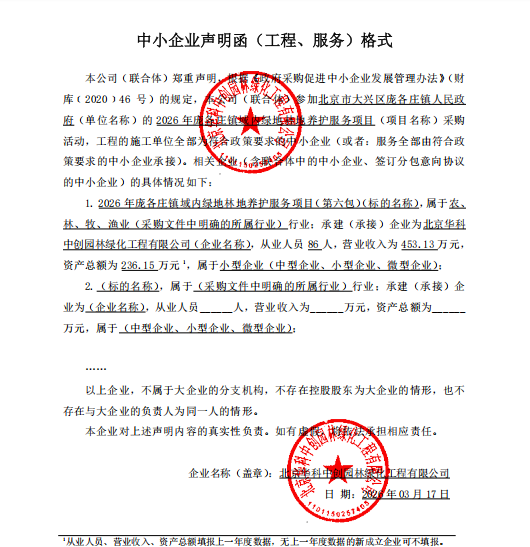 中标成交供应商名称:北京华科中创园林绿化工程有限公司