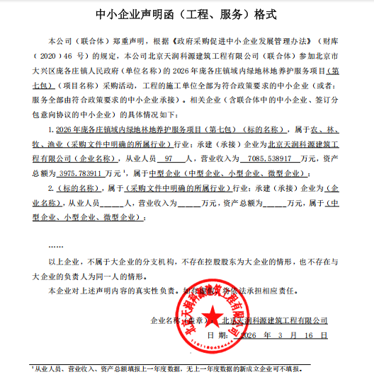| 北京新环中态市政园林有限公司 | 北京市大兴区魏善庄镇中心路100号院1号楼2层295室(集群注册) | 91110115MACL6EUG0R | 172.164225 万元 | 评审总得分(综合评分法): 89.52 分 |