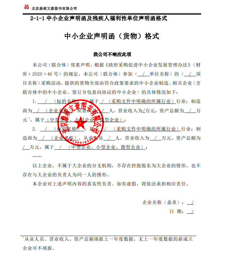 | 北京鼎硕文豪图书有限公司 | 图书馆配项目 | / | 1 | 200万元 | 200万元 | 按照磋商文件要求 |