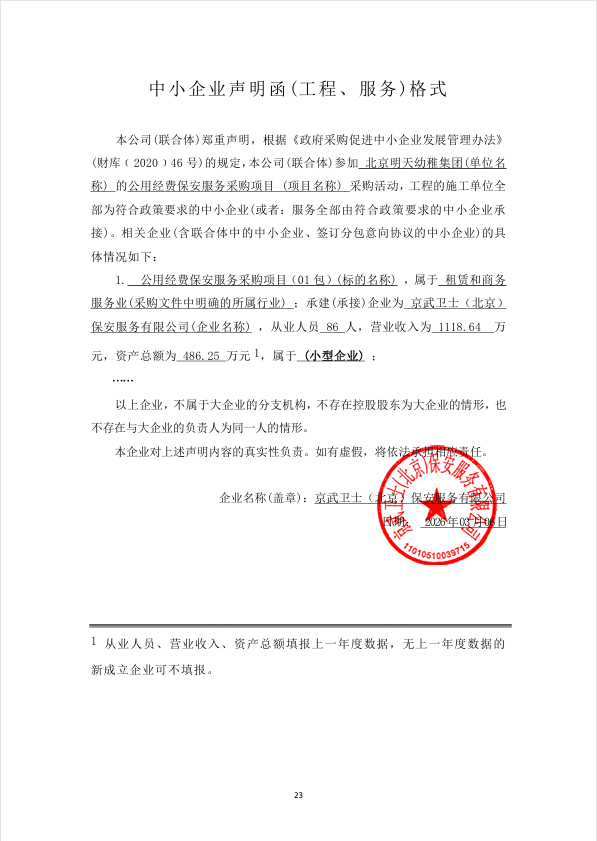 | 京武卫士(北京)保安服务有限公司 | 1 | 165.6655万元 | 165.6655万元 | 详见招标文件 |