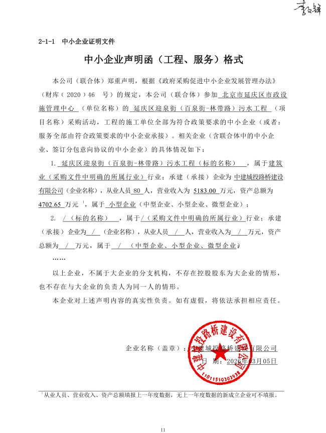 中标成交供应商名称:中建城投路桥建设有限公司