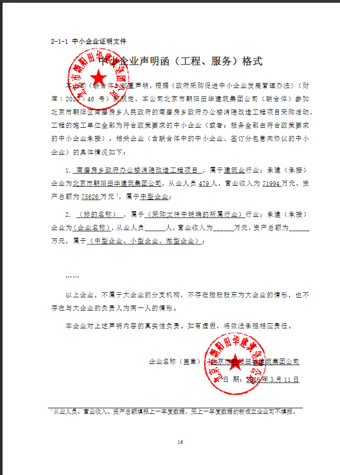 中标成交供应商名称:北京市朝阳田华建筑集团公司