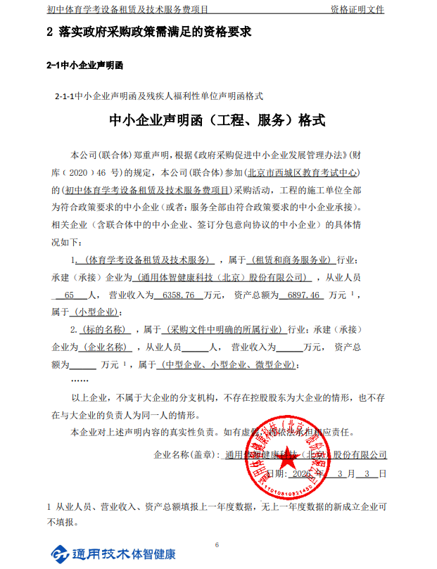中标成交供应商名称:通用体智健康科技(北京)股份有限公司