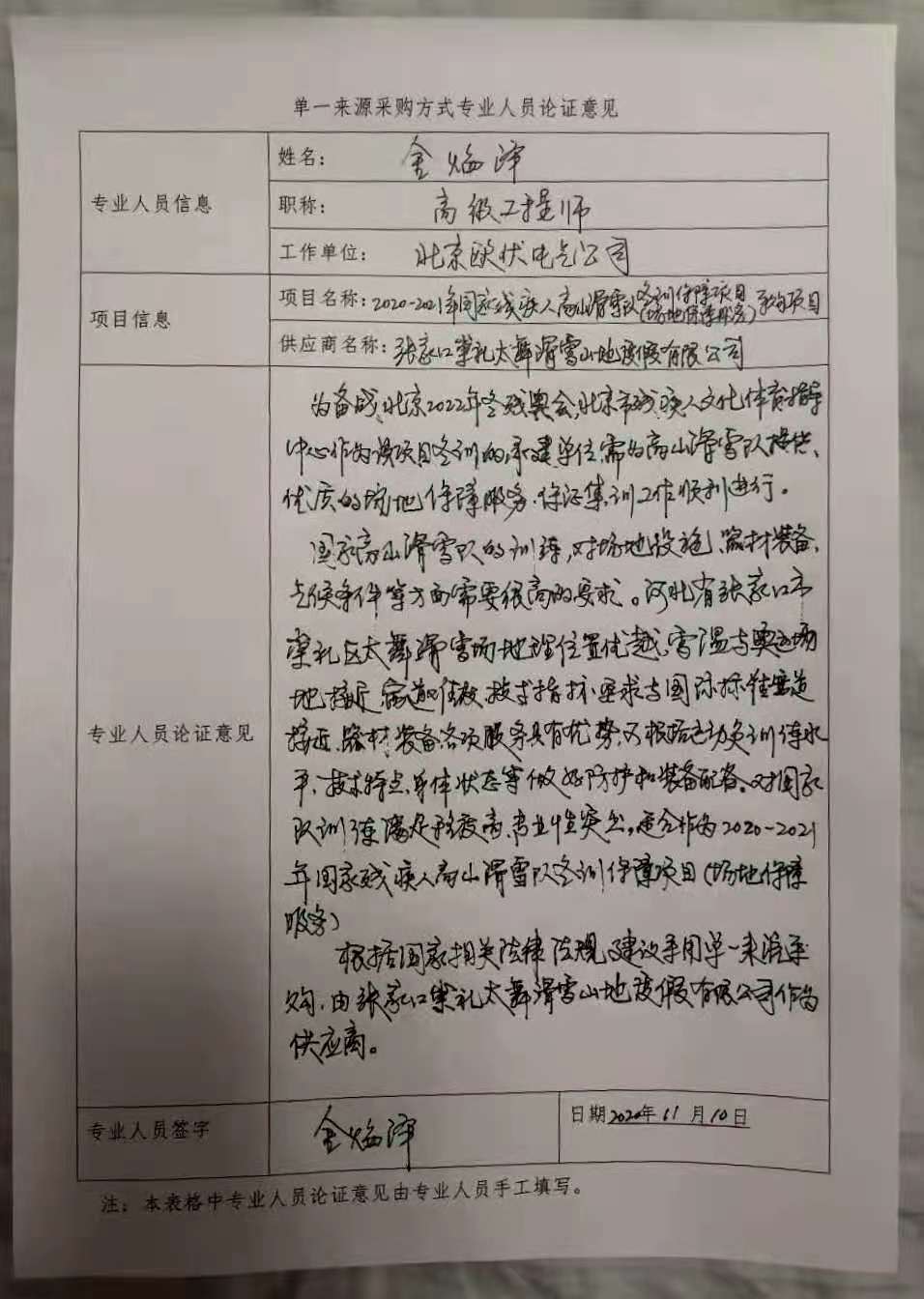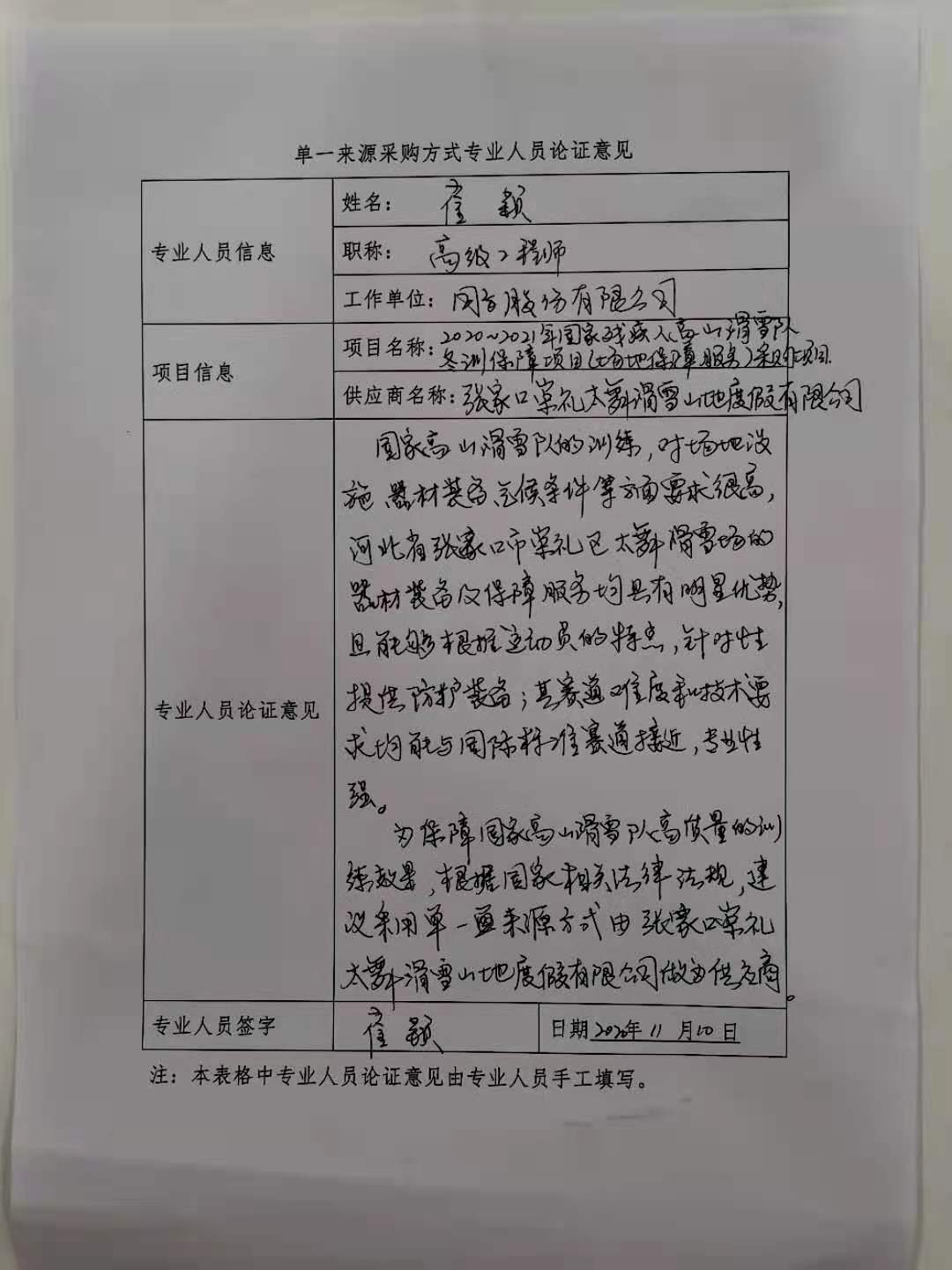 鉴于上述原因,该项目申请按单一来源采购方式进行采购,选择其张家口崇礼太舞滑雪山地度假有限公司作为唯一采购供应商。