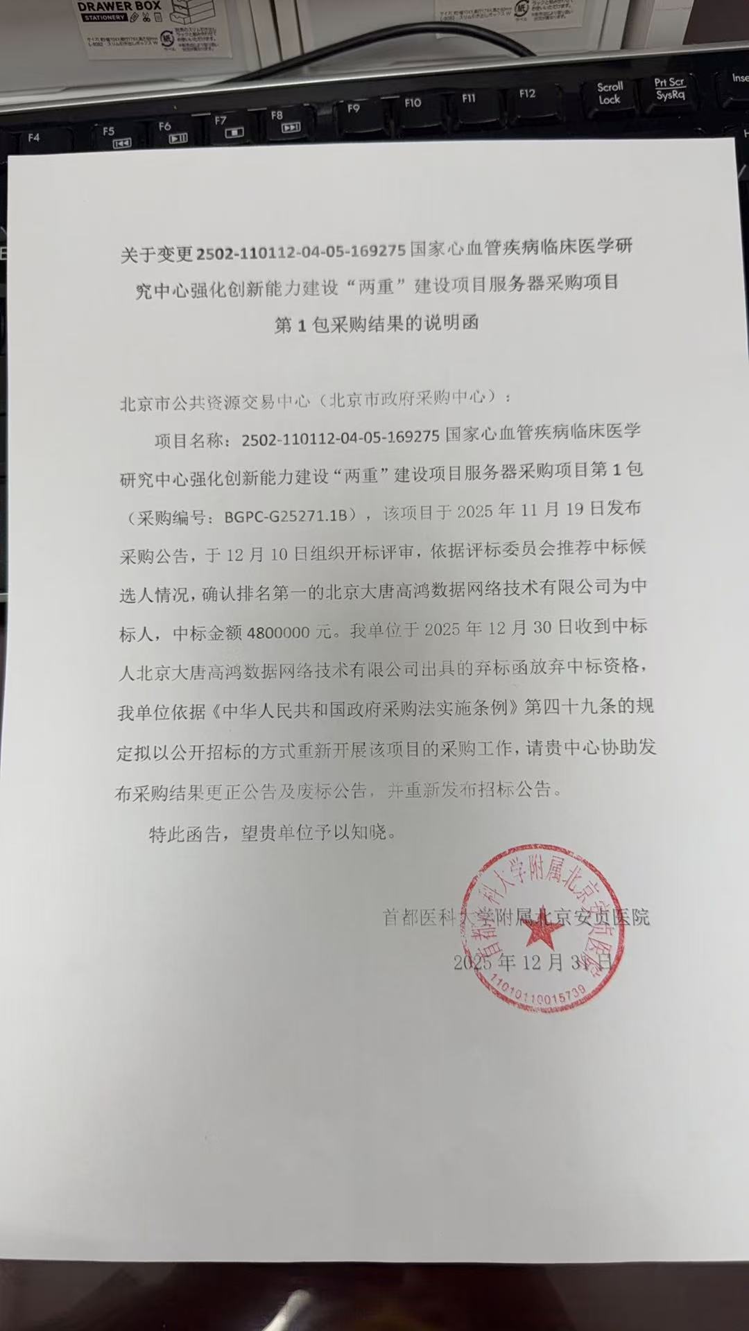 原公告的采购项目名称:2502-110112-04-05-169275国家心血管疾病临床医学研究中心强化创新能力建设“两重”建设项目服务器采购项目