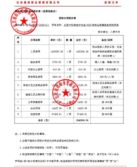 | 北京通政物业管理有限公司 | 1 | 154.53万元 | 154.53万元 | 详见采购文件 |
