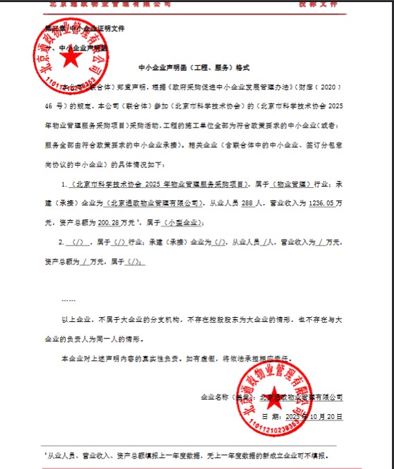 二、项目名称:北京市科学技术协会2025年物业管理服务采购项目