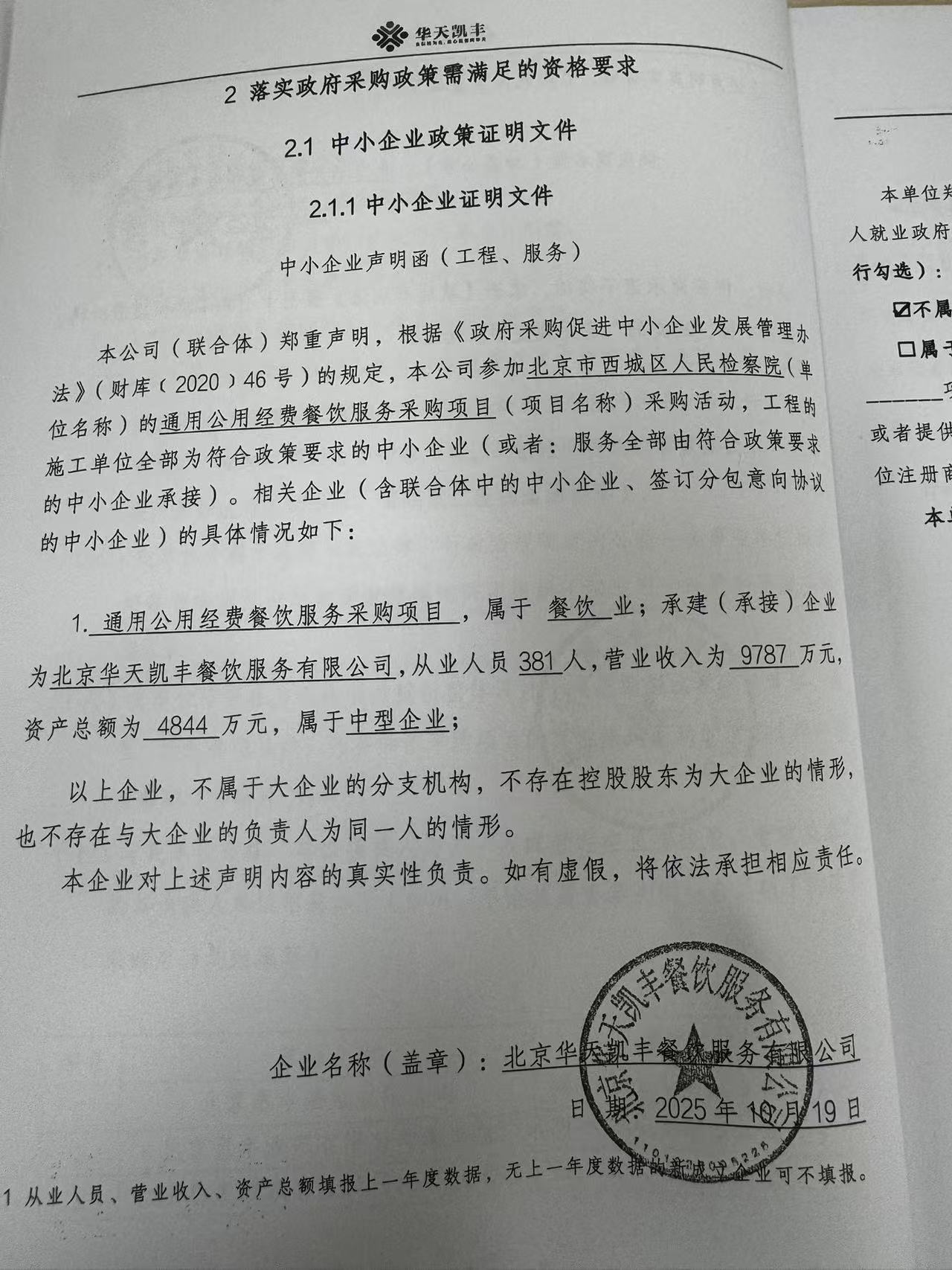 中标成交供应商名称:北京华天凯丰餐饮服务有限公司