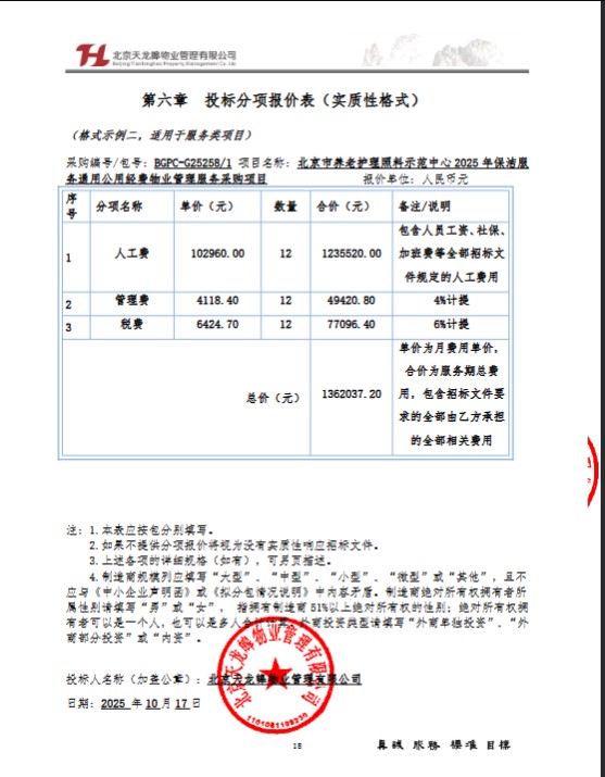 | 北京天龙皞物业管理有限公司 | 1 | 136.20372万元 | 136.20372万元 | 详见采购文件 |