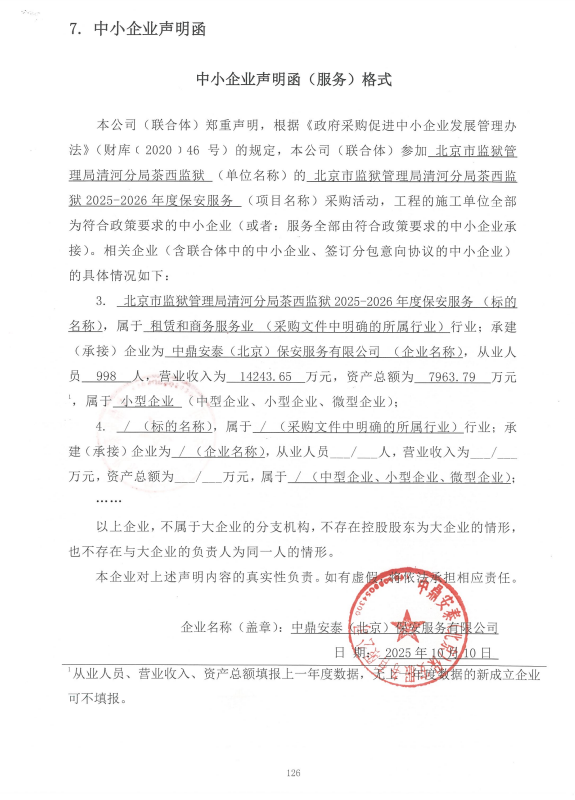 二、项目名称:北京市监狱管理局清河分局茶西监狱2025-2026年度保安服务项目