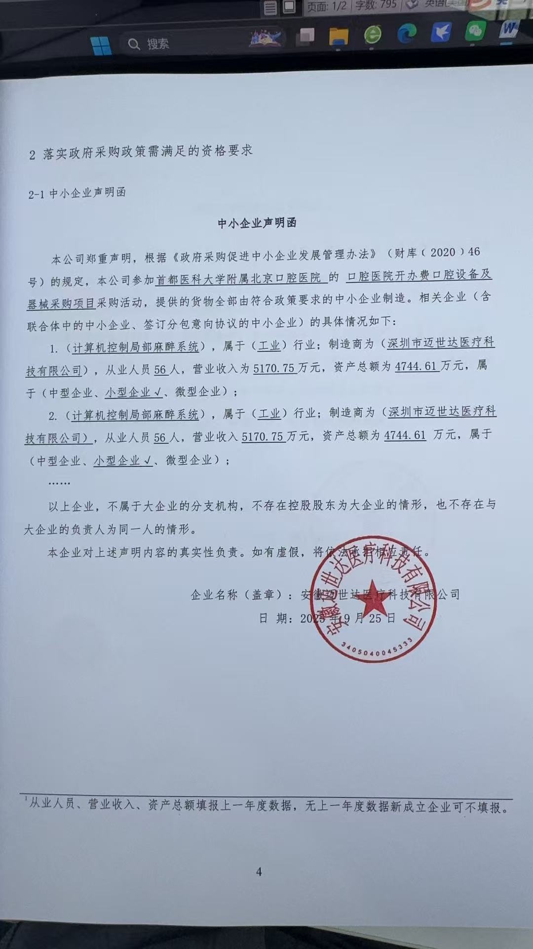 中标成交供应商名称:安徽迈世达医疗科技有限公司