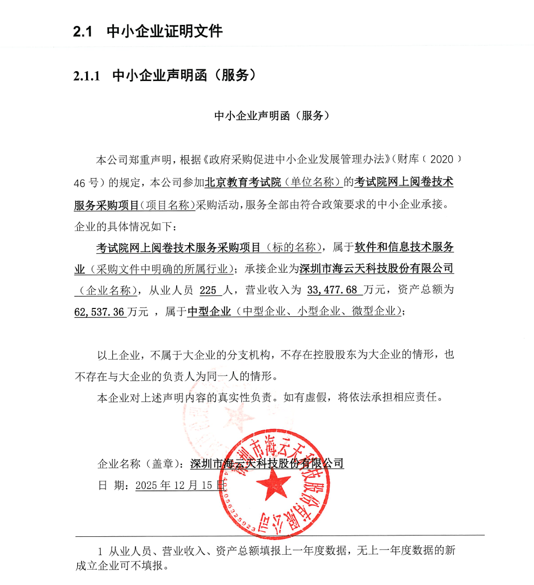 | 深圳市海云天科技股份有限公司 | 1 | 9.724万元 | 9.724万元 | 详见磋商文件第四章采购需求 | ||