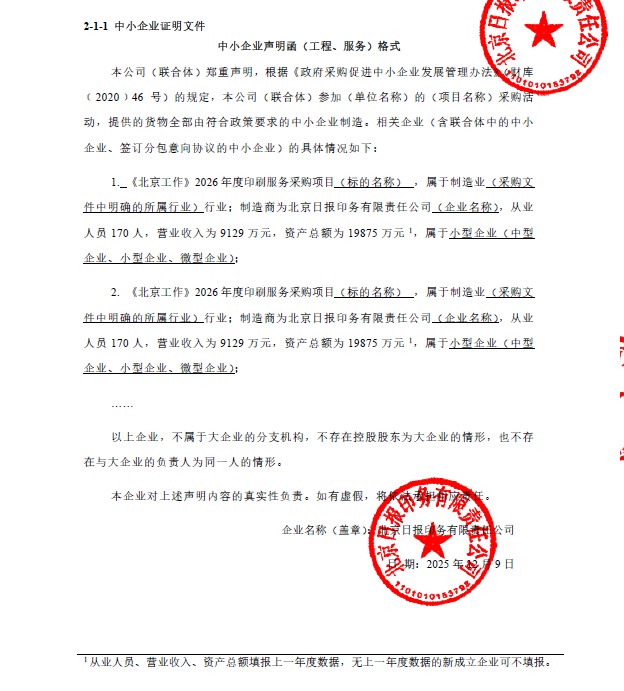 二、项目名称:《北京工作》2026年度印刷服务采购项目