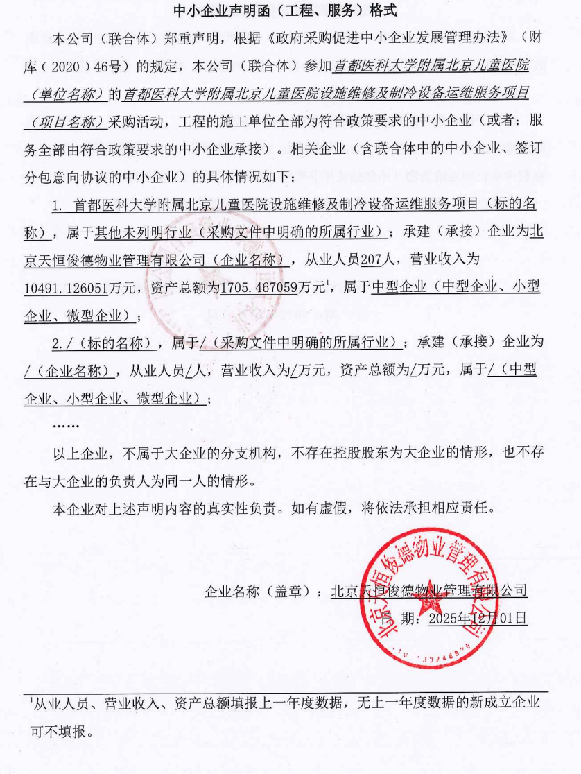 中标成交供应商名称:北京天恒俊德物业管理有限公司